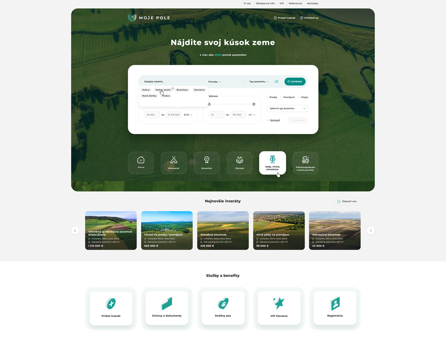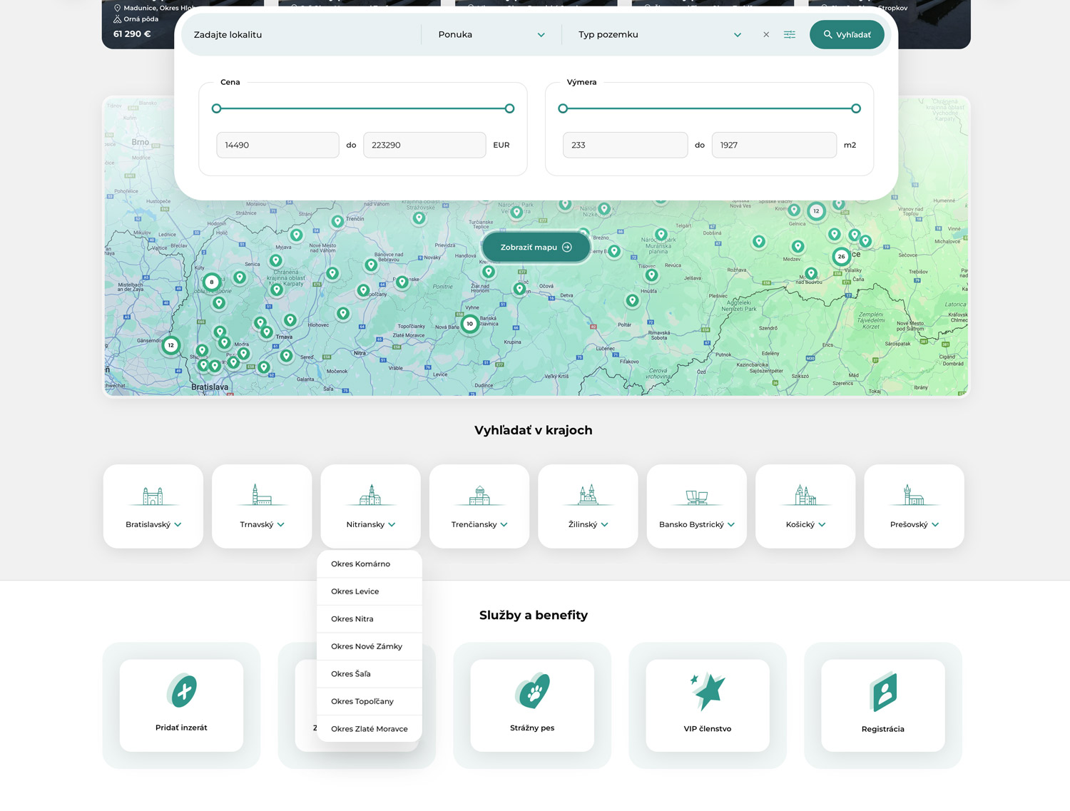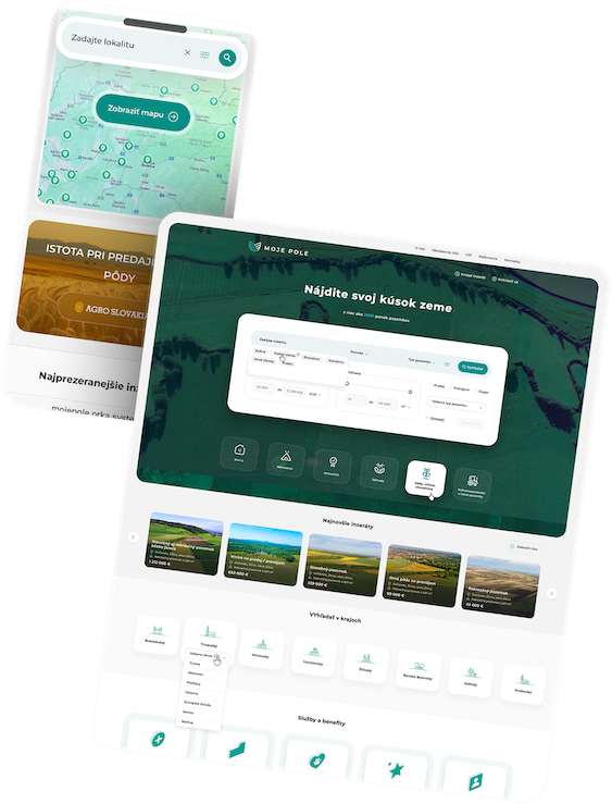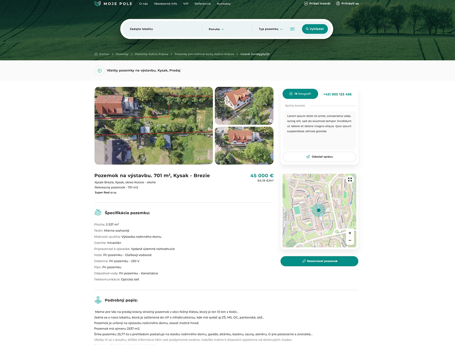 A map displaying all plots. Visual overview of all advertised properties directly on the map. Information are being fetched directly from the cadastre.