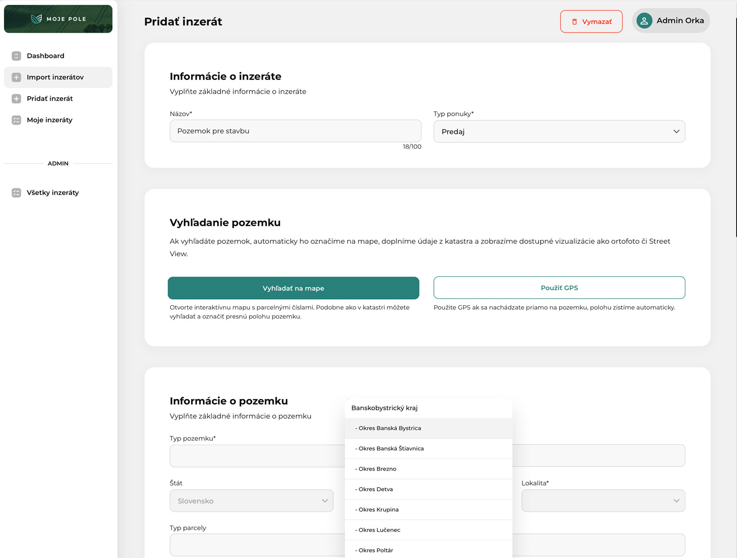 Bulk import of listings. Automatic generation of listing texts and descriptions. Auto-filling of photos via StreetView and orthophotos.